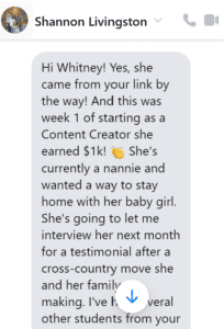 Cómo ganar $1k: Una de las alumnas recientes de Shannon tomó su curso y ¡ganó $1,000 en su primera semana después de terminarlo!
